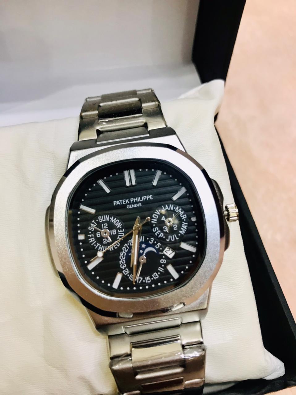 Patek Philippe Chronograph-Style Men’s Watch – Stainless Steel with Black Dial